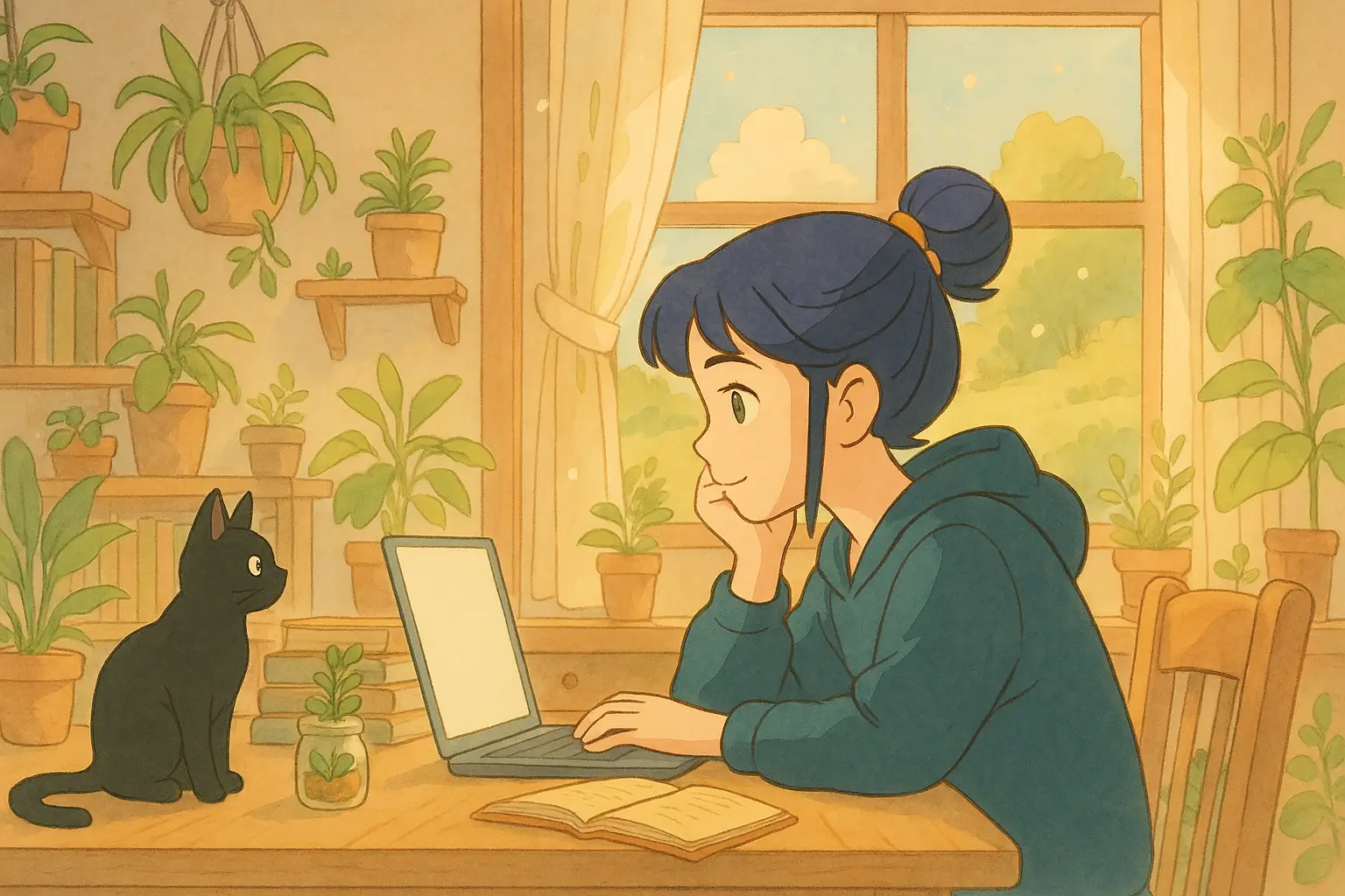 Transform the uploaded image into a Studio Ghibli-style animated portrait. Keep the person's main features recognizable, but adapt them to Ghibli aesthetics: large expressive eyes, soft and rounded facial features, smooth skin, and a gentle, kind expression. Use a soft pastel color palette and add a whimsical, nature-inspired background with floating petals, soft lighting, and a dreamy atmosphere. Style it like a magical scene from My Neighbor Totoro or Spirited Away.